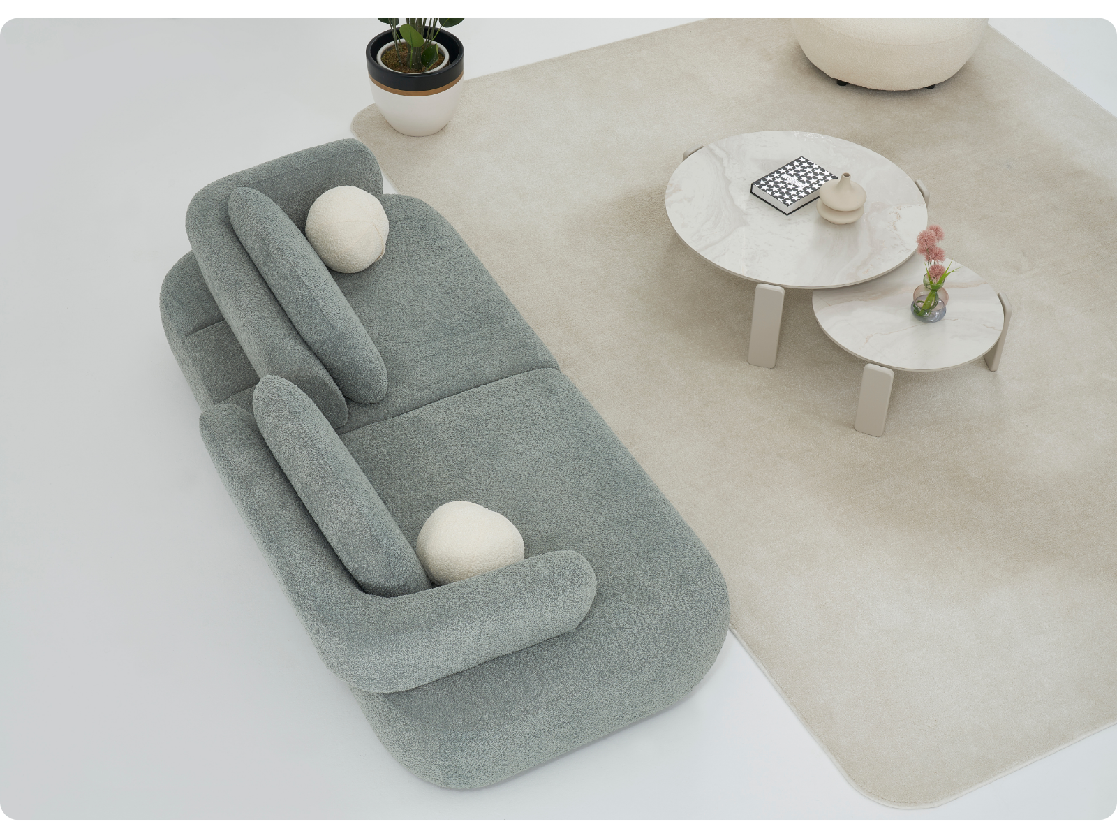- Inklusive Kissen: Der 3-Sitzer wird mit runden und quadratischen Kissen geliefert, die perfekt auf das Design abgestimmt sind und zusätzlichen Komfort bieten.