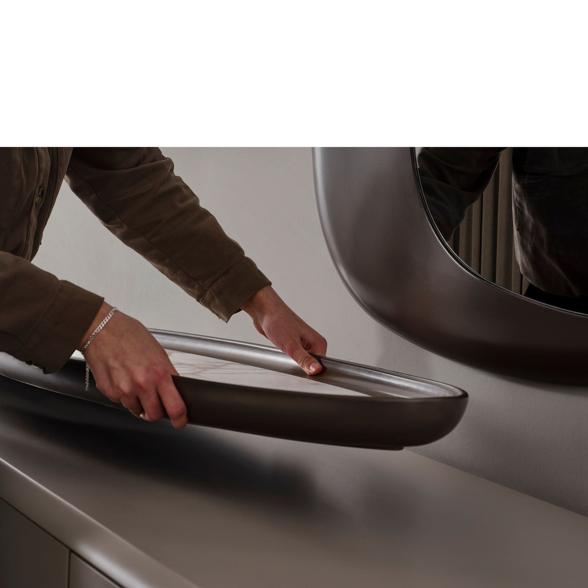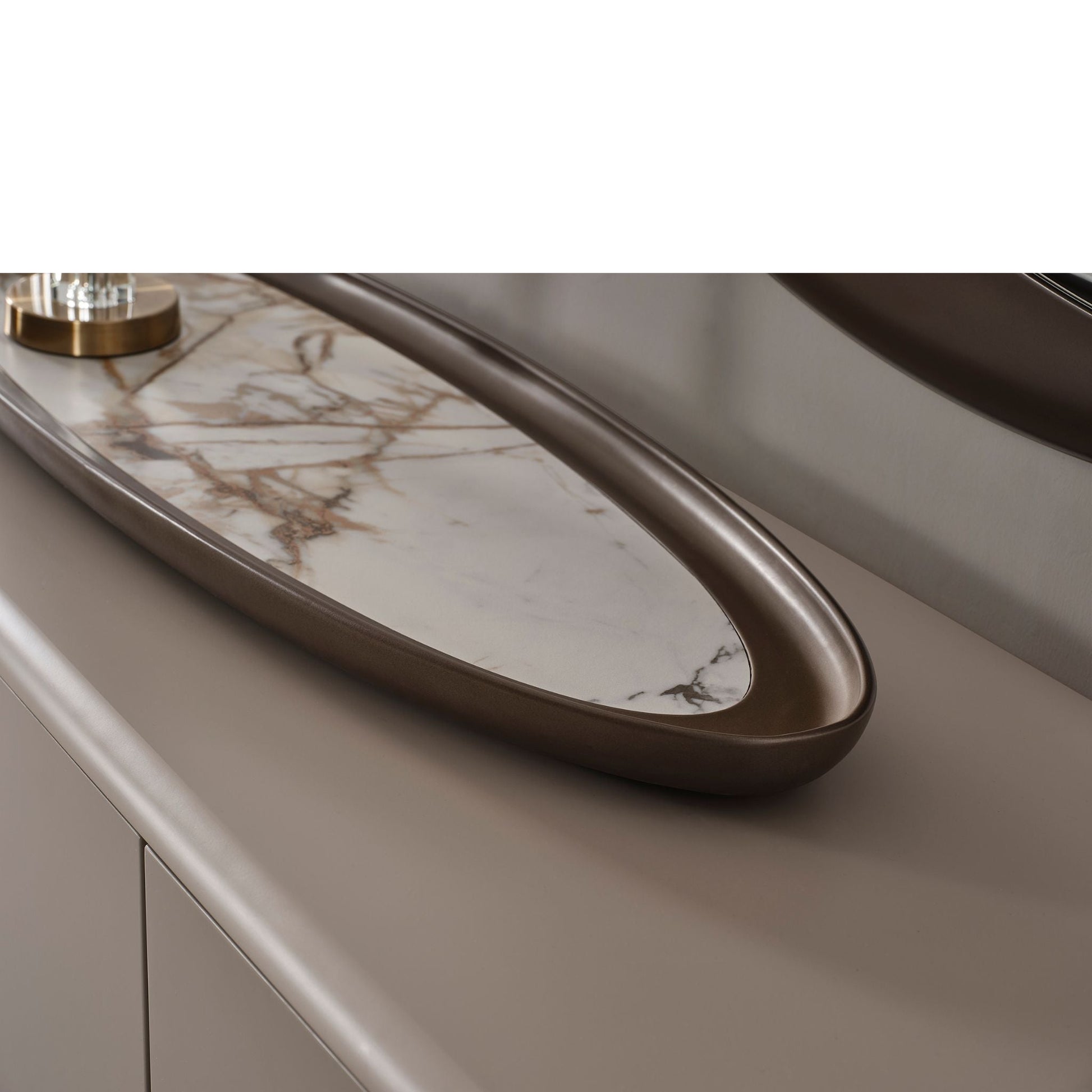 Spiegel: Abgerundete Form mit elegantem Rahmen – ideal abgestimmt auf das Sideboard.