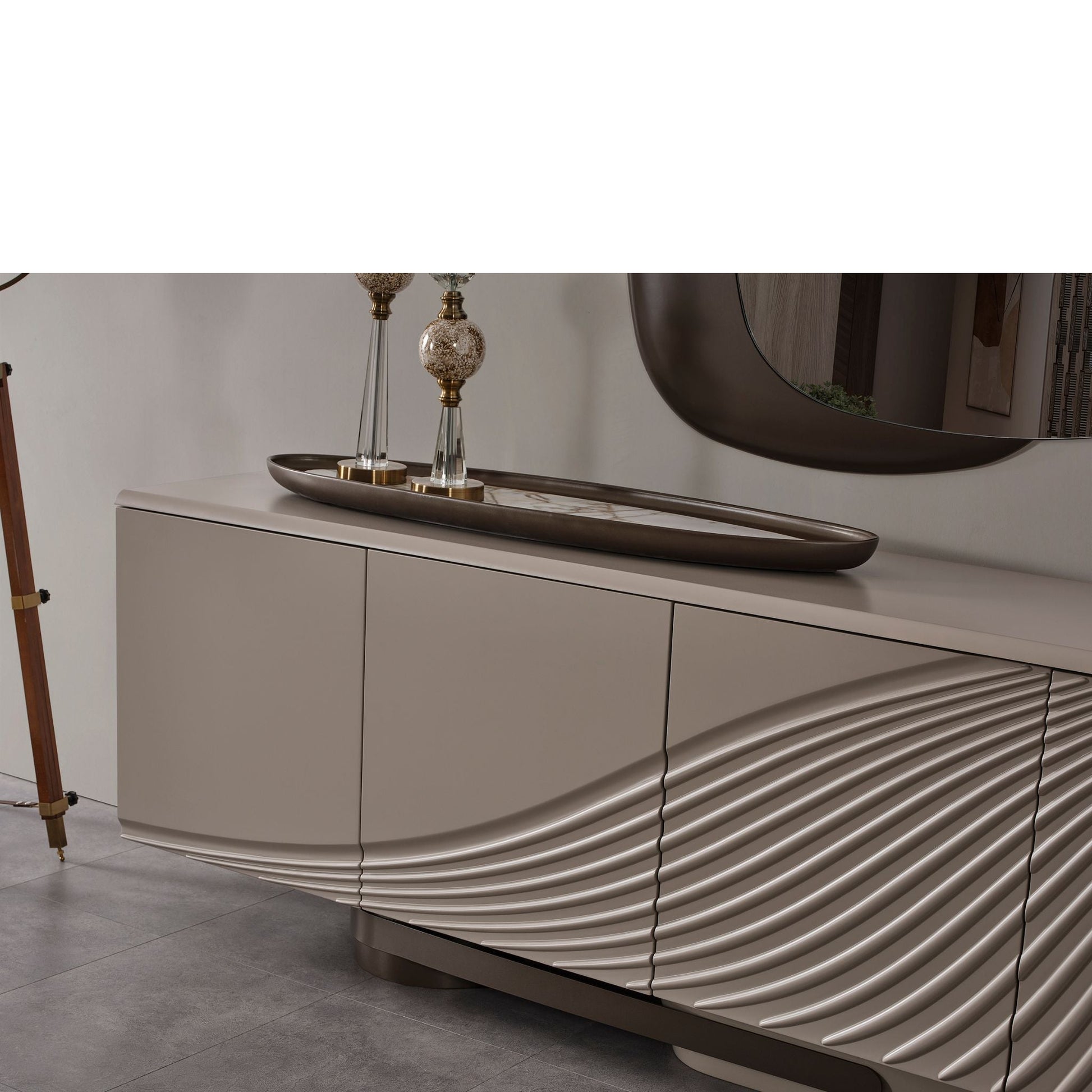 Sideboard: Vier Türen mit geschwungener Linienprägung, großzügigem Stauraum und harmonischem Farbverlauf.