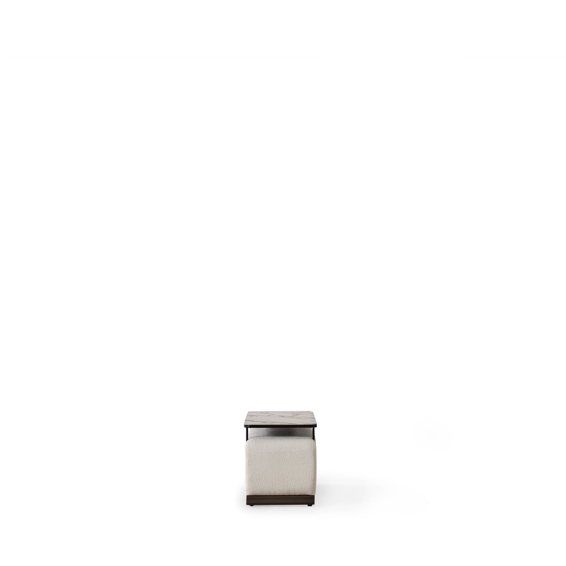 Optional kann ein Ablagetisch-Modul zwischen zwei Sofaelemente eingeklemmt werden – mit stabiler Marmoroptik-Platte, ideal für Getränke, Bücher oder Dekoration.