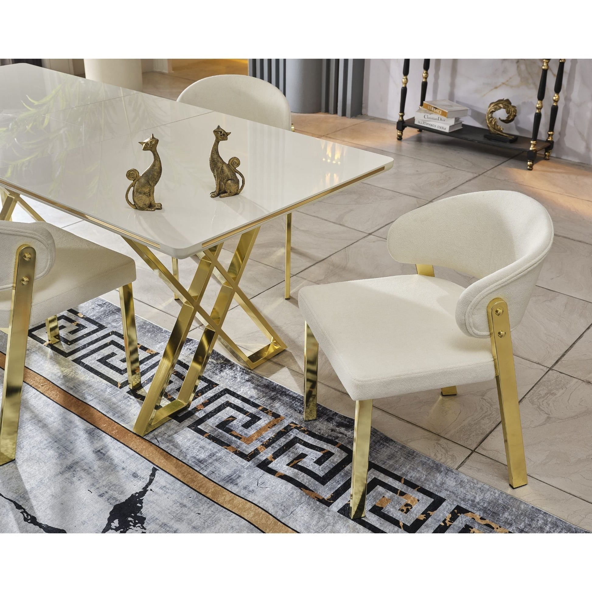 Luna Elite Esstisch-Set Gold – mit Lizbon Stühlen