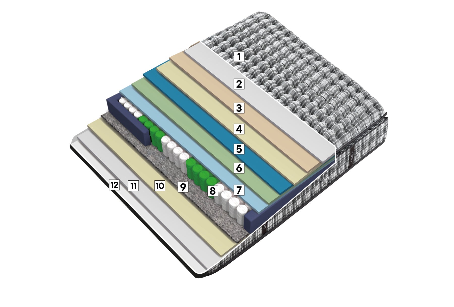 - Komfortschichten: Mehrere Schichten aus weichem Schaumstoff, Thermobond-Filz und gepolstertem Vlies sorgen für ein weiches Liegegefühl und fördern eine optimale Druckentlastung.