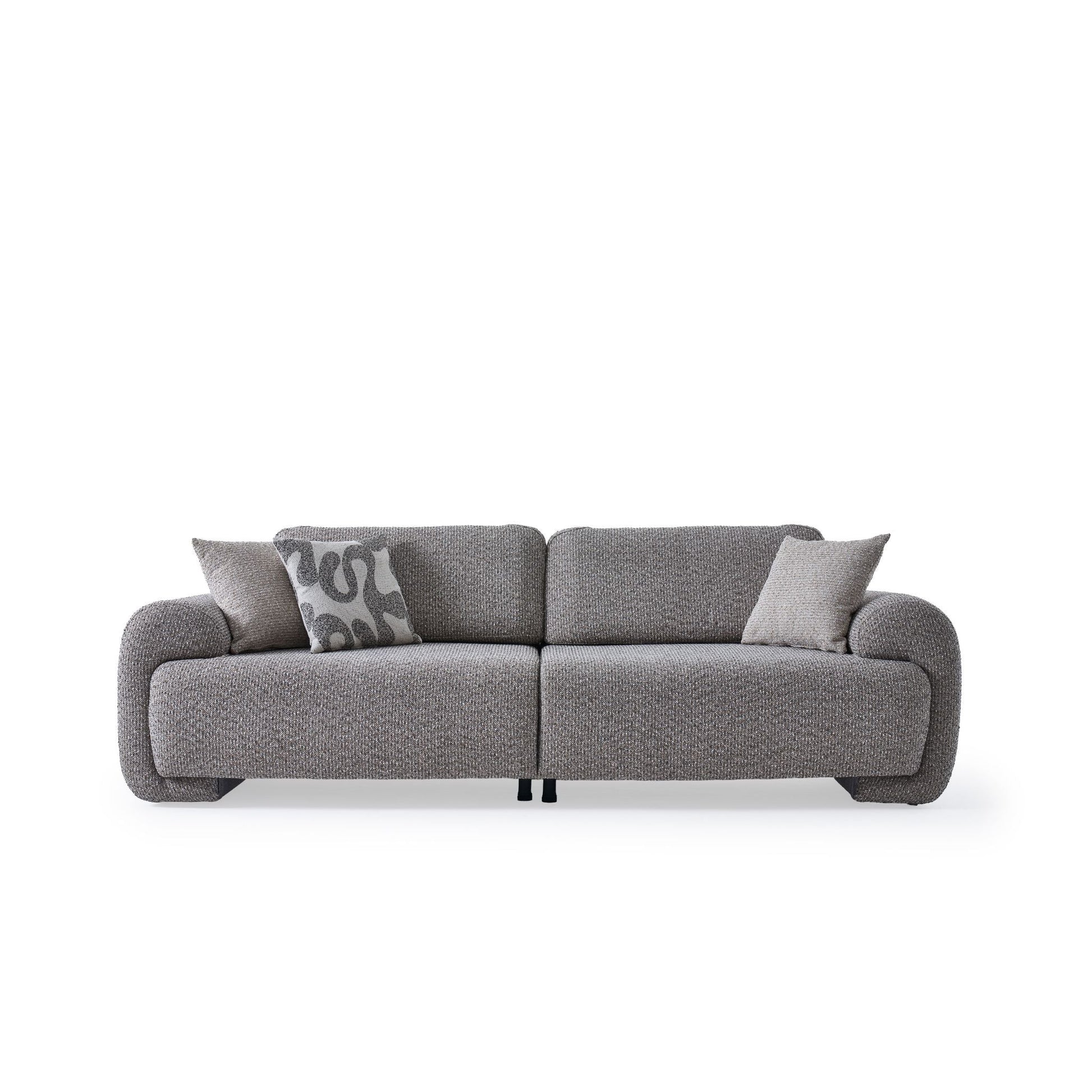 Die Sofas haben eine klare, moderne Form mit eleganten runden Armlehnen, die den Look besonders hochwertig wirken lassen.