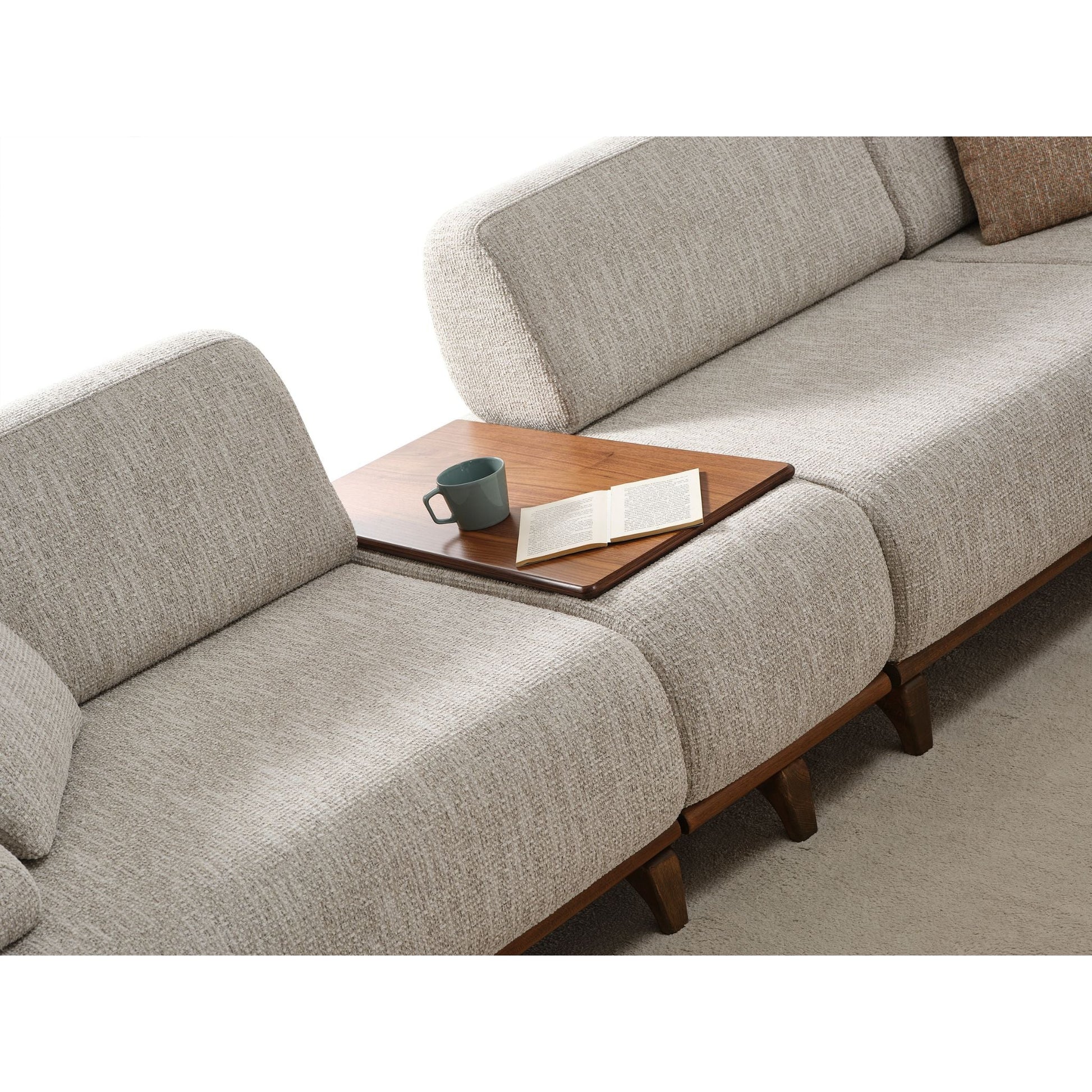 Optionale Holzelemente zwischen den Modulen – ideal als Ablagefläche für Getränke oder Deko
