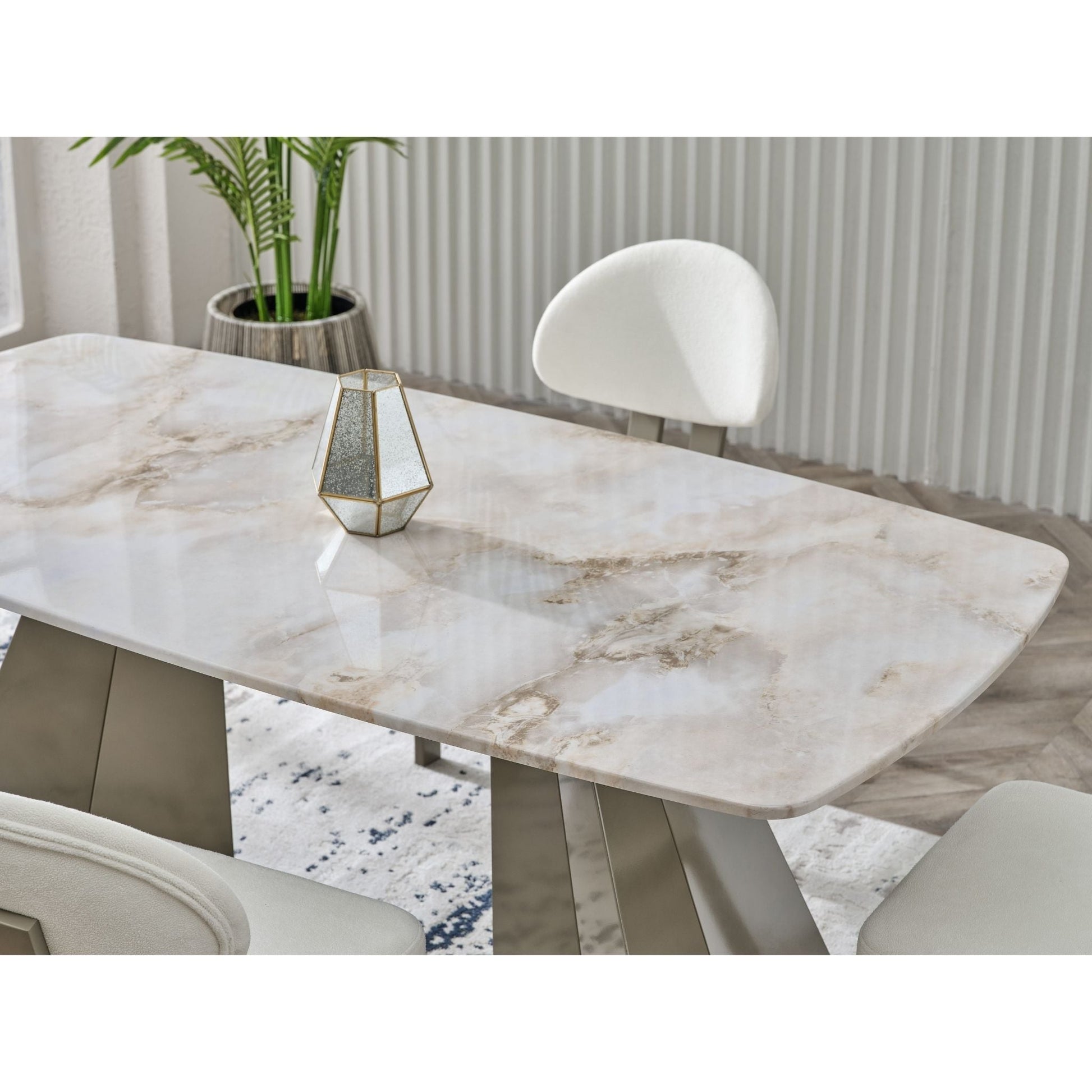 Pramid Mermerit Esstisch-Set mit Viyana Stühlen (180 × 92 cm)